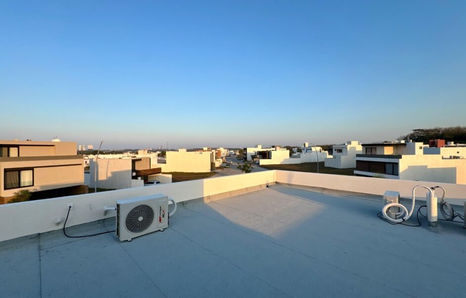 Climatizada en habitaciones y sala, comedor.