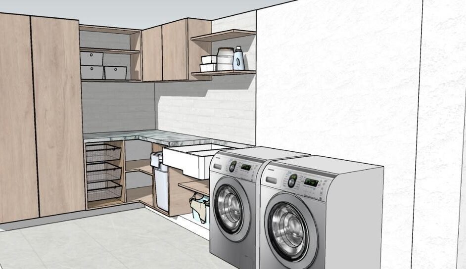 Cuarto de servicio con baño completo, Área de lavado en sótano