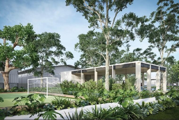 Ubicado a 700 metros de la carretera costera del Golfo, al este del municipio de Kanasín, Yucatán.