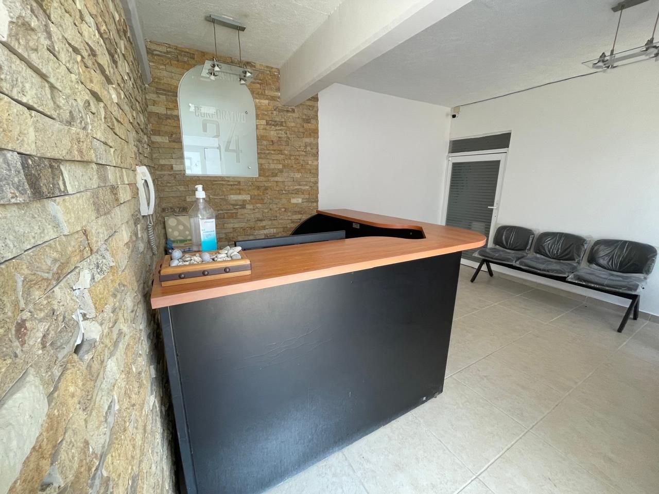 Incluye Agua, Internet, luz, teléfono, recepcionista, uso de áreas comunes como son la sala de juntas, el jardín y la cocina.