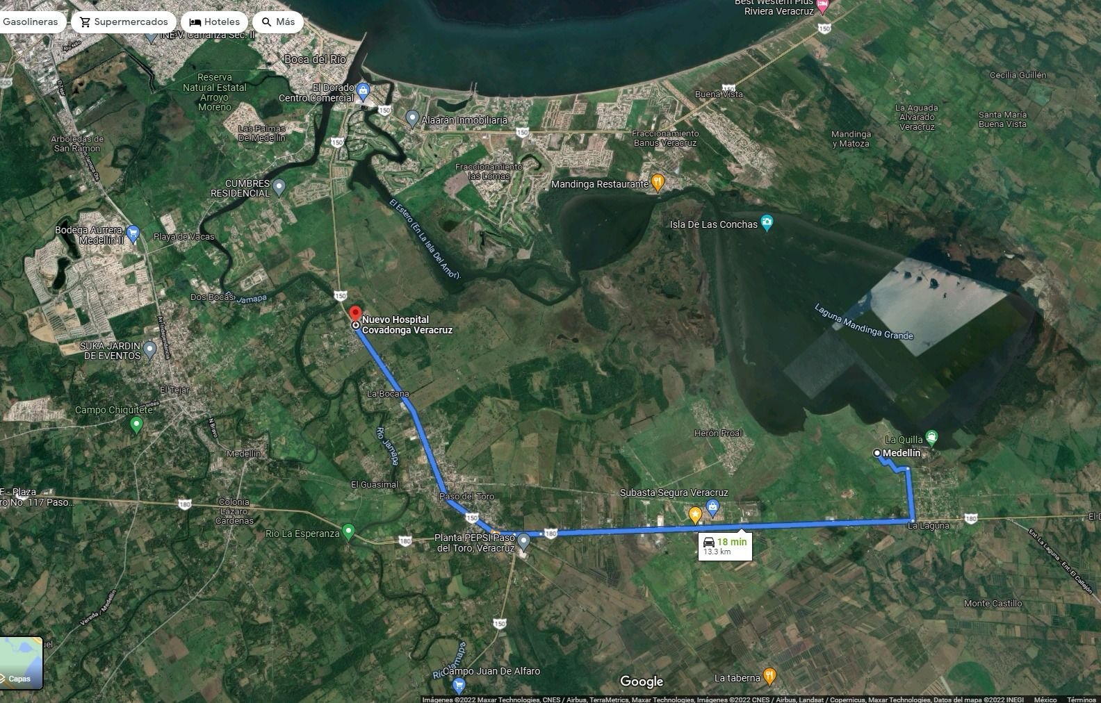Colinda en 200 m con Laguna Mandinga Grande